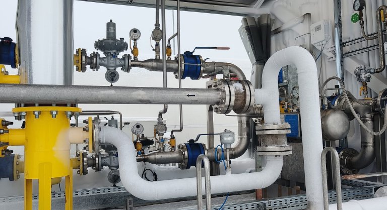 4. Stacja redukcyjno-pomiarowa – dostosowuje ciśnienie gazu do potrzeb klienta.
